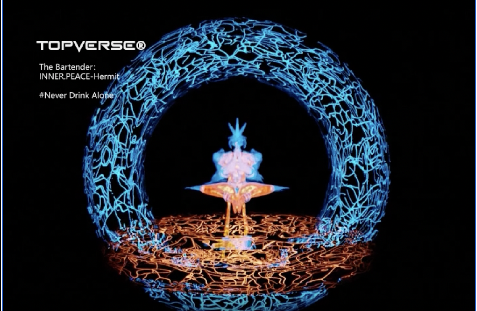 「People who come to the 'Never Drink Alone' bar wish to get connected either to seek comfort of the restless hearts, or to share their sorrows with others getting relieved, to celebrate, to cheer, to forget, to laugh, to cry, to love, to find inner peace. The hermit Zening within the forest of wines and lights always informs people of their egos.」