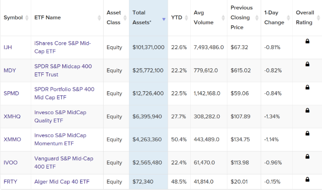 除了IJH,还有一些其他相关ETF可供选择,给大家整理成了下面的一个表格,以供参考。