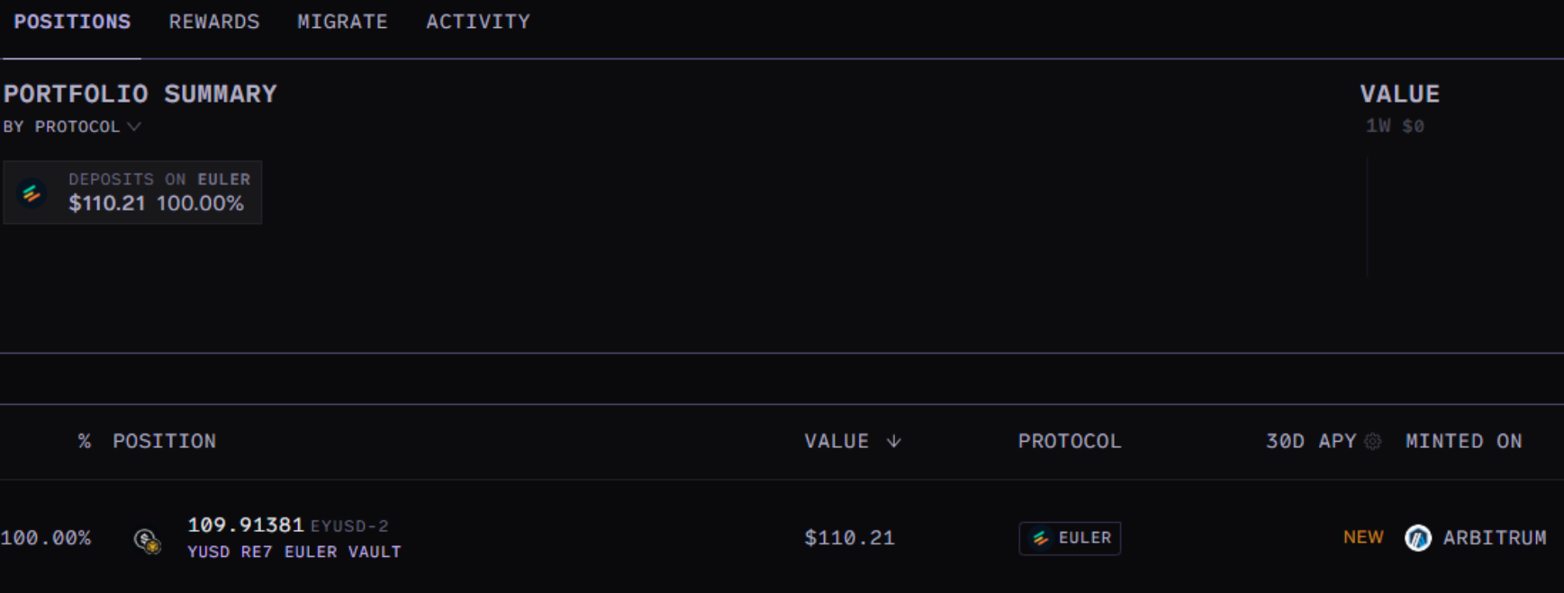 That’s it! You have successfully deposited YUSD into the vault. You can now see your position in the Portfolio tab.