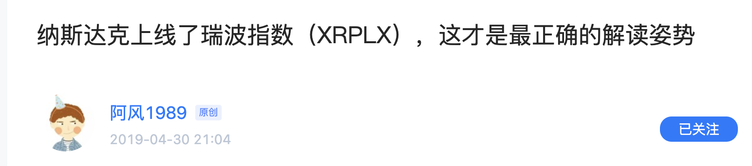 纳斯达克之前(2月26日)上线过比特币与以太坊指数(BLX、ELX),当时纳斯达克官员就曾表示“瑞波指数(XRPLX)已经在路上了”,没想到他们动作这么快。