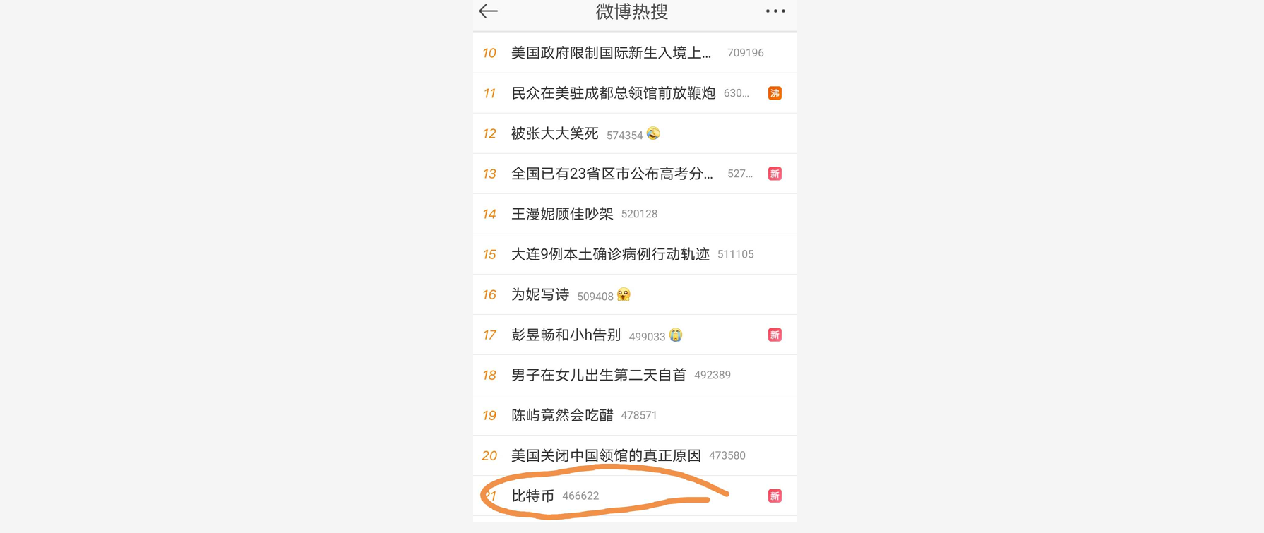 甚至还把比特币推上了7月25日上午9时47分的微博热搜,最高排行第21位,财经网、福布斯中文网、新浪财经的官微纷纷转发,评论区上演了一场“比美国联邦法院大法官水平还高”的评论秀。