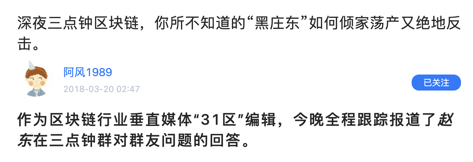 总结,赵东分别从几个方面,给三点钟区块链社群的朋友们做了精彩的回答,特别是涉及到赵东当年爆仓的经历时,让广大投资者唏嘘不已,也让大家看到了资本市场的残酷,做事情一定要稳稳的,不去赌博。现在时间马上凌晨三点钟了,原来一个群聊天是很容易到三点钟的,过年那段时间三点钟群真的是聊天到三点钟,祝大家区块链资产投资顺利。