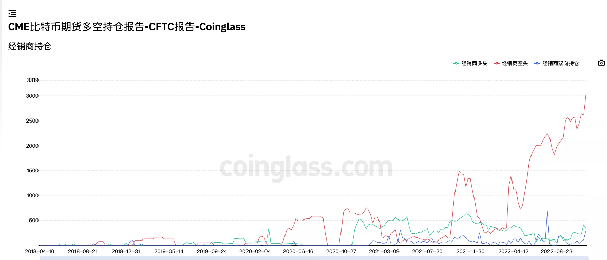 芝加哥商品交易所(CME),于2017年12月份推出比特币期货交易,一直以来都是机构交易者用以比特币杠杆交易的重要场所,目前多空持仓比特币数量超过16万个(加密市场合约总持仓量为150万左右),持仓对象包括经销商/经纪商/杠杠基金/大户/散户,一般而言经销商持仓情况往往预示市场未来走势,目前经销商多空持仓比为0.11,预示着有接近90%的经招商看空市场。