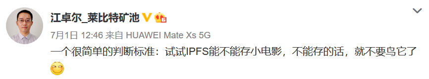 针对江卓尔小电影理论,我采访过Filecoin资深矿工,得到的答案是,目前Filecoinke可以存储几十集的电视剧与高清电影,存不了小电影纯属臆想。