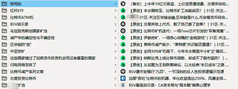 在写作方面,除了认识不少行业从业者,其实这阶段也积累了大量行业相关的素材与内容,这些素材与内容链接都被我分门别类归纳进入将近20个文件夹中,这样每次只要想要写作某个方面的文章,素材与数据基本上都是信手拈来的。
