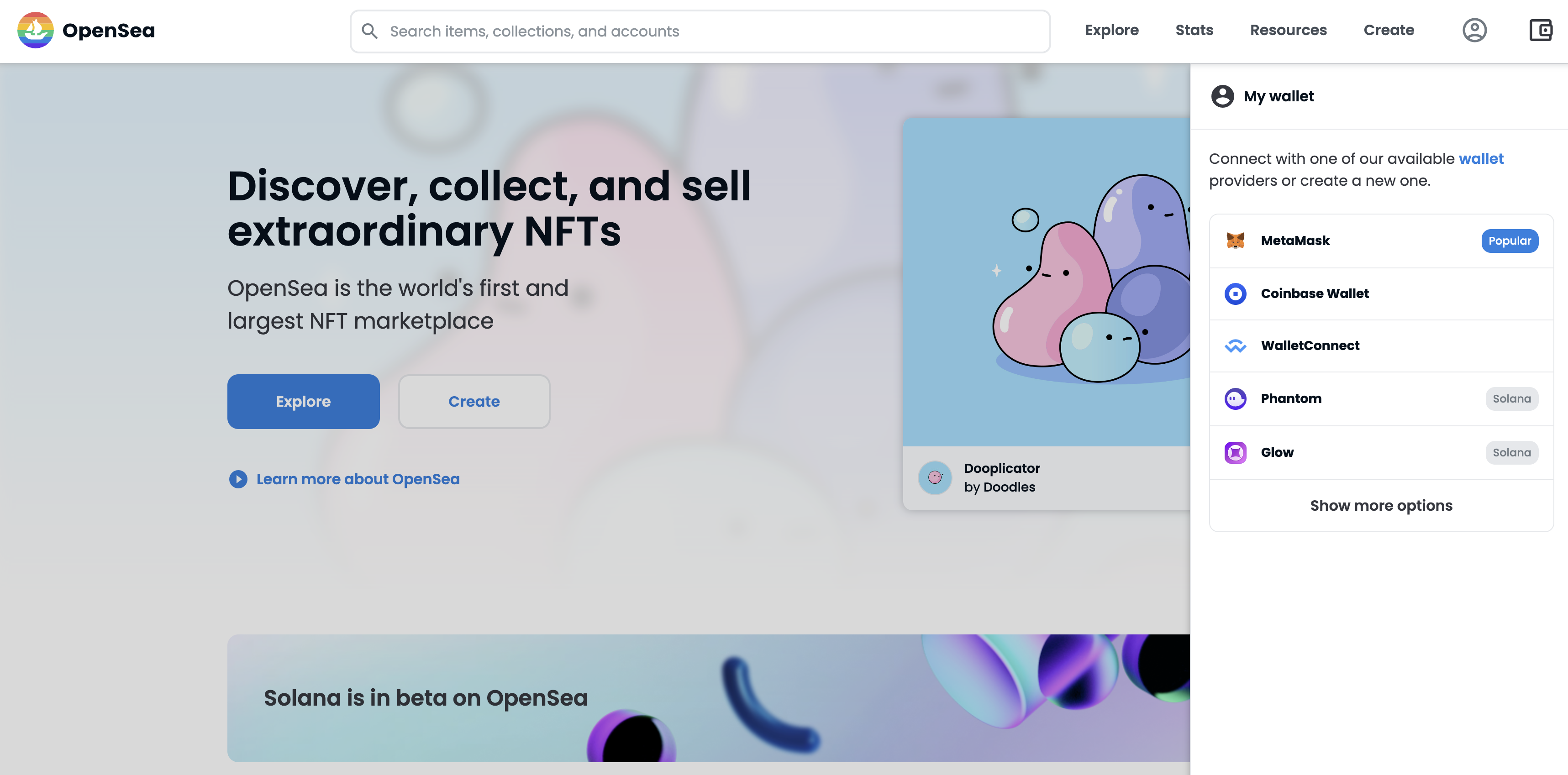 OpenSea 是目前全球最大的去中心化 NFT 交易平台,成立于 2018 年 1 月。它涵盖广泛的 NFT 类别、集成了各个平台的 NFT,并以更优惠的价格出售,是目前主流 NFT 玩家使用最多的交易平台。无论是总交易额,还是用户数量,相较于其他竞争平台均遥遥领先。用户可以在Opensea购买、出售、拍卖甚至免Gas费创作NFT。