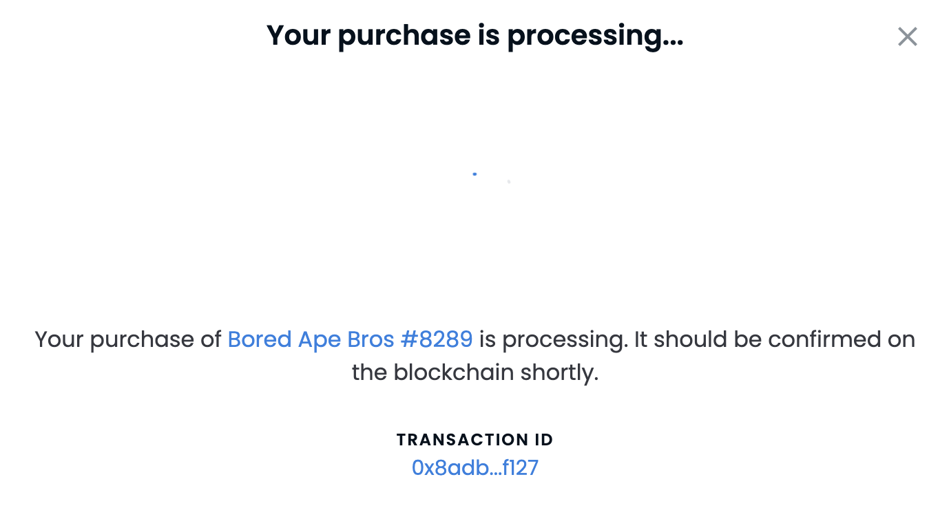 点击Buy now蓝色按钮,会弹出交易确认弹窗。