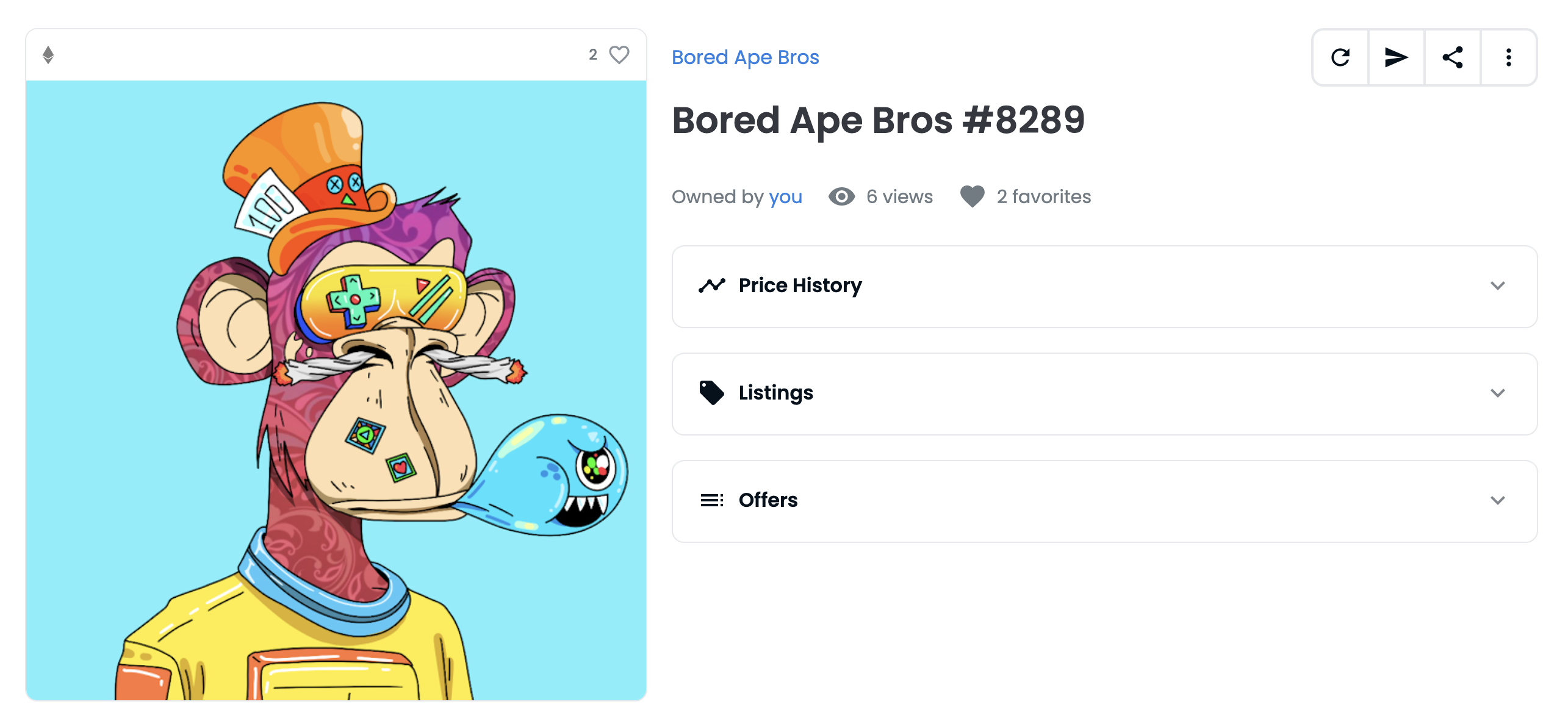 交易成功后可以看到该NFT的详情页上已经展示它归你所有(Owned by you)。