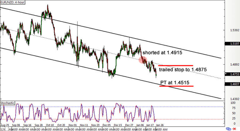 在下图中,退出设置为接近下降通道底部的特定价格。