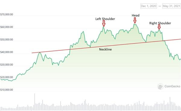 让我们使用 BTC 从 2020 年 11 月到 2021 年 7 月的价格走势来说明技术分析的工作原理。上图举例说明了头肩形态,这是一种潜在的价格走势反转形态,其中任何突破颈线都预示着价格的重大变化。 BTC 的价格在 2021 年 5 月 15 日跌破颈线时从 50,000 美元跌至近 35,000 美元。
