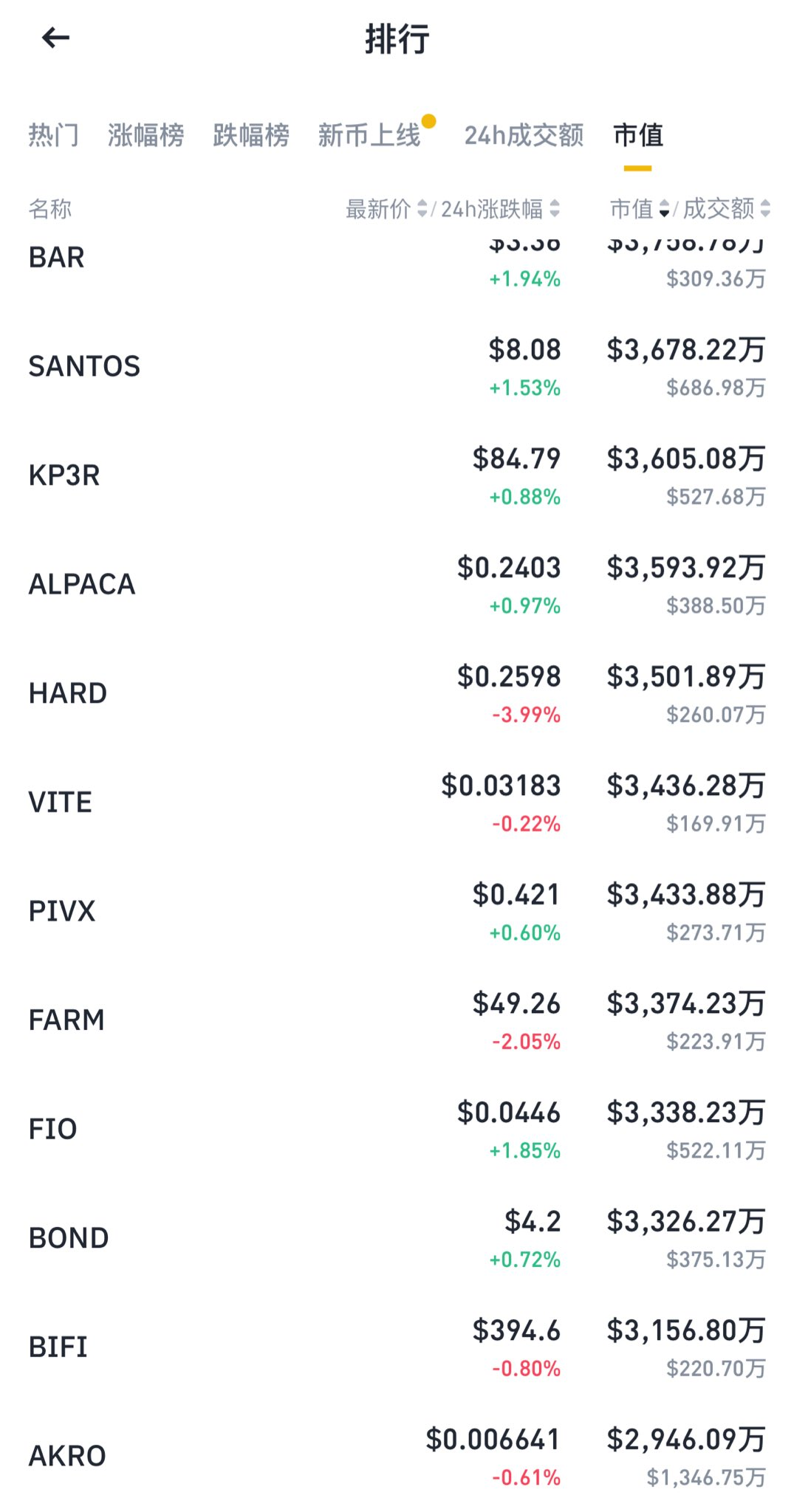 其次再根据自己的交易偏好,确定想要交易的币种流通市值范围,比如自己的交易偏好市值在2000万美金到5亿美金,