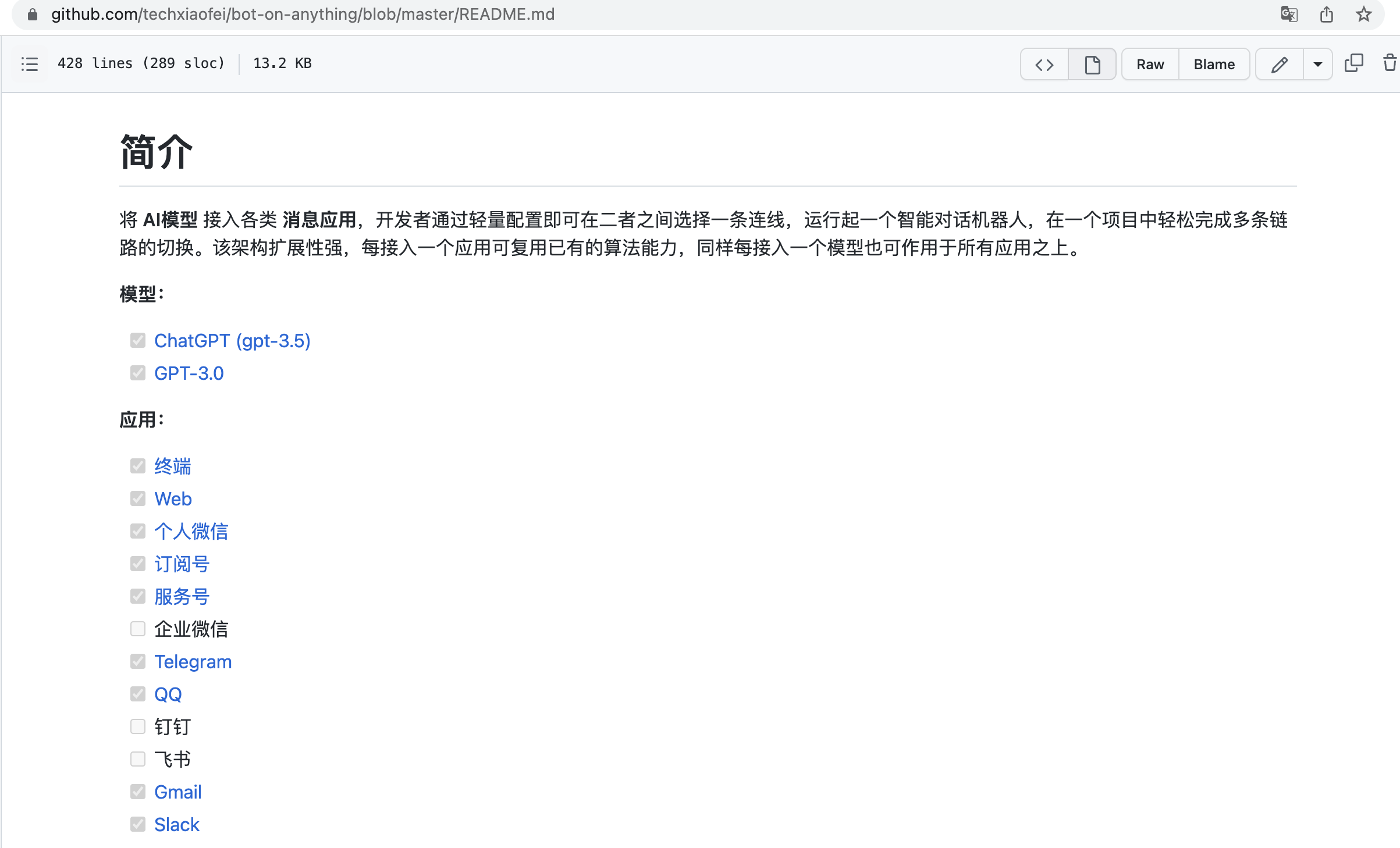 首先,我们需要使用到github上的一份第三方代码,这份代码将 chatGPT 接入各类 消息应用。这个chatGPT是真实的GPT3.5
