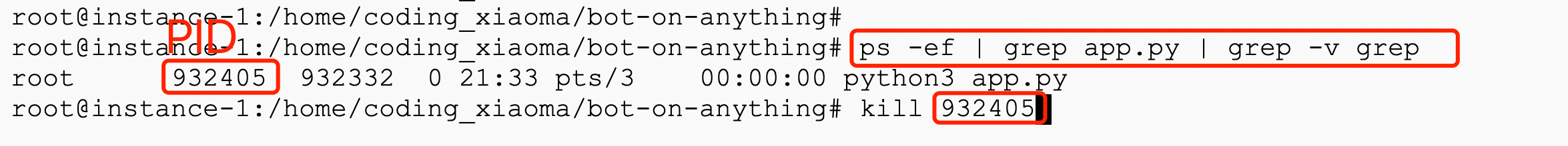 第一行先查出来PID,然后第二行kill你查到的PID就可以。