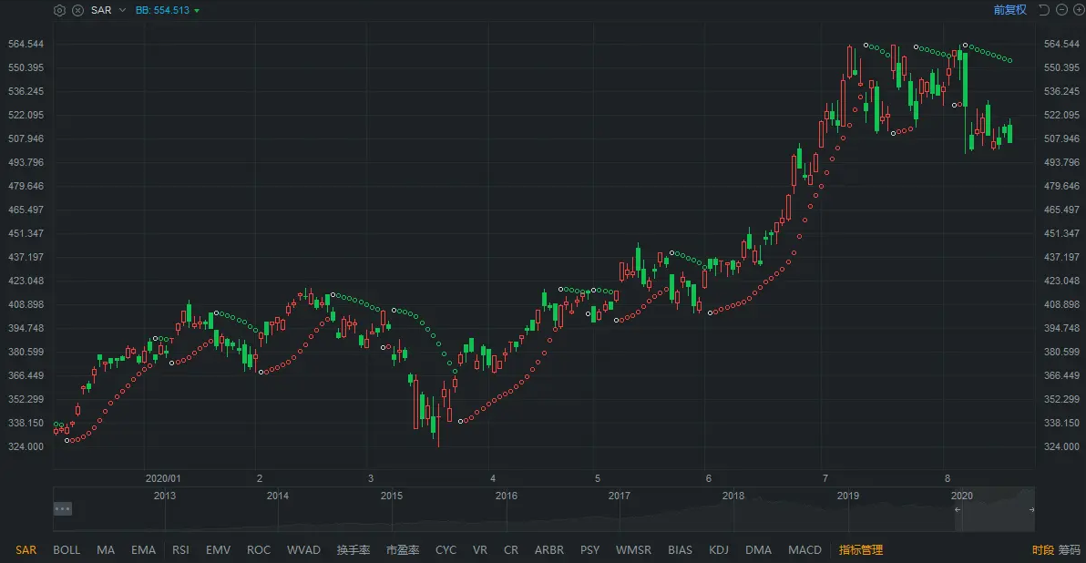 4.5 长期使用SAR指标虽不能买进最低价,也不能卖出最高价,但可以避免长期套牢的危险,同时又能避免错失牛股行情。