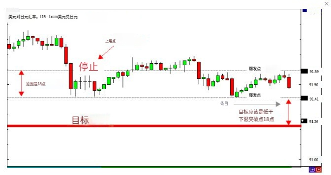 然后,您可以在上突破点处设置止损,并将限制设置为与突破点范围相同的点数。