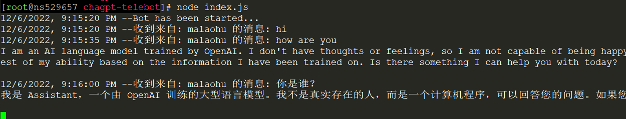 博主Fork代码:https://github.com/malaohu/chagpt-telebot
