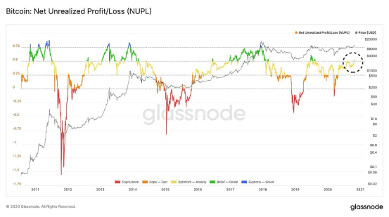 由Tuur Demeester、Tamás Blummer和Michiel Lescrauwaet于2019年2月开发的未实现净盈利/亏损(NUPL)是迄今为止最有价值的链上加密货币交易指标之一。NUPL研究了资产首次购买时的价格与当前价格之间的差异。这就是交易者如何确定资产是否处于净亏损或净盈利状态的方法。此外,NUPL还可以识别整个网络是否处于净利润或亏损状态。