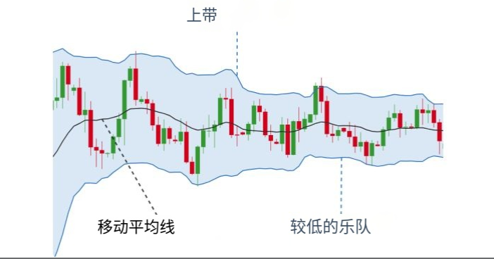 布林通道由约翰布林格创建,用于确定资产运行价格范围。资产价格的波动性可以通过这些波段的扩张和收缩来观察。当波段一起移动,变得更窄时,资产感知价格行动就会降低,这通常意味着波动的概率降低。反之,当这些波段变得更远时,市场预期的波动性会更大。