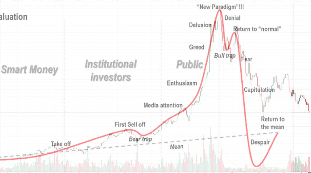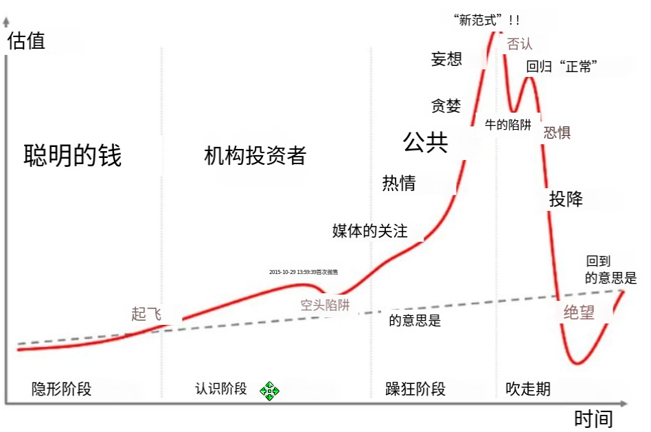 这是我昨天遇到的一张很棒的图表,它十分古老,不过生动地概括了泡沫从开始到破灭的各个阶段。