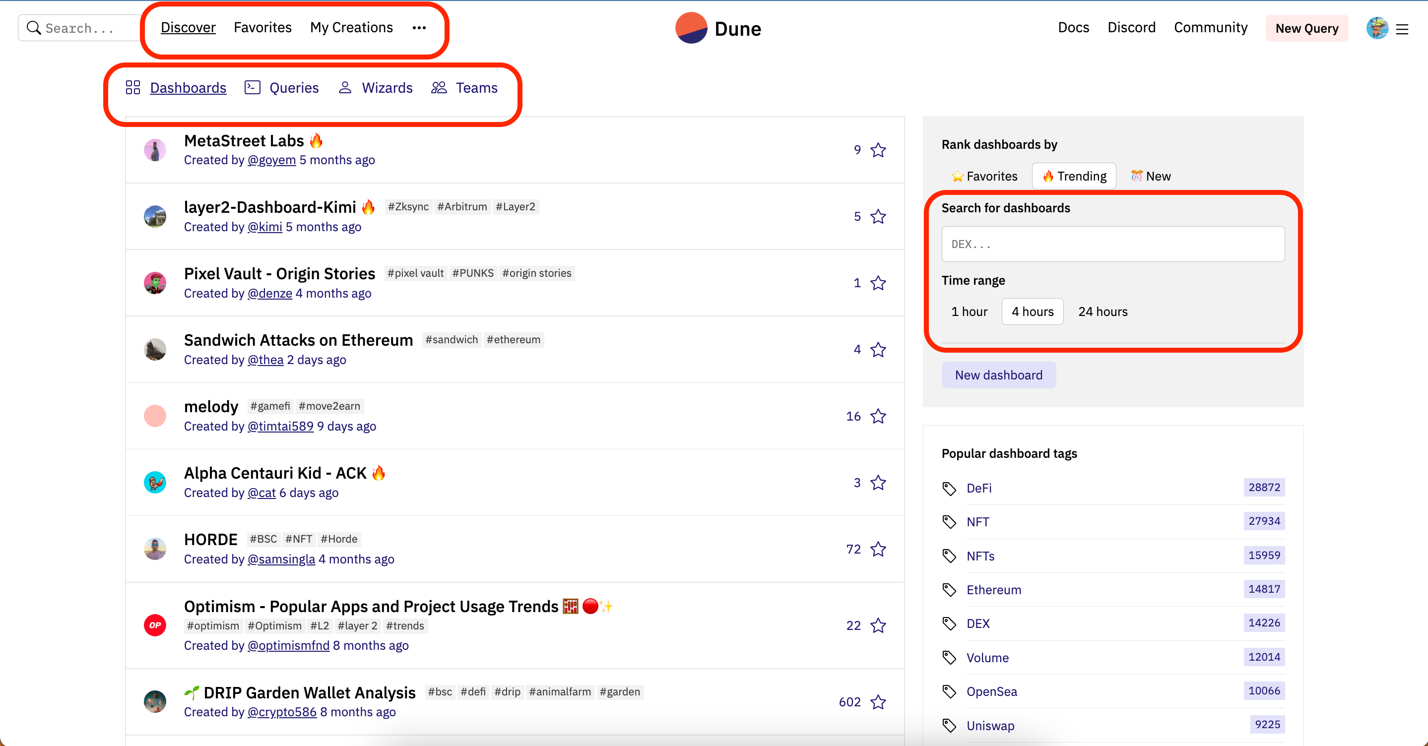 **Dune**是一个链上的数据分析平台,用户可以在平台上面书写SQL语句,从Dune解析的区块链数据库中筛选出自己需要的数据,并生成对应的图表,组成仪表盘。