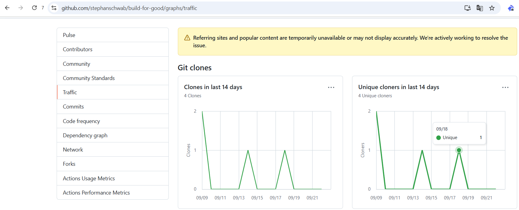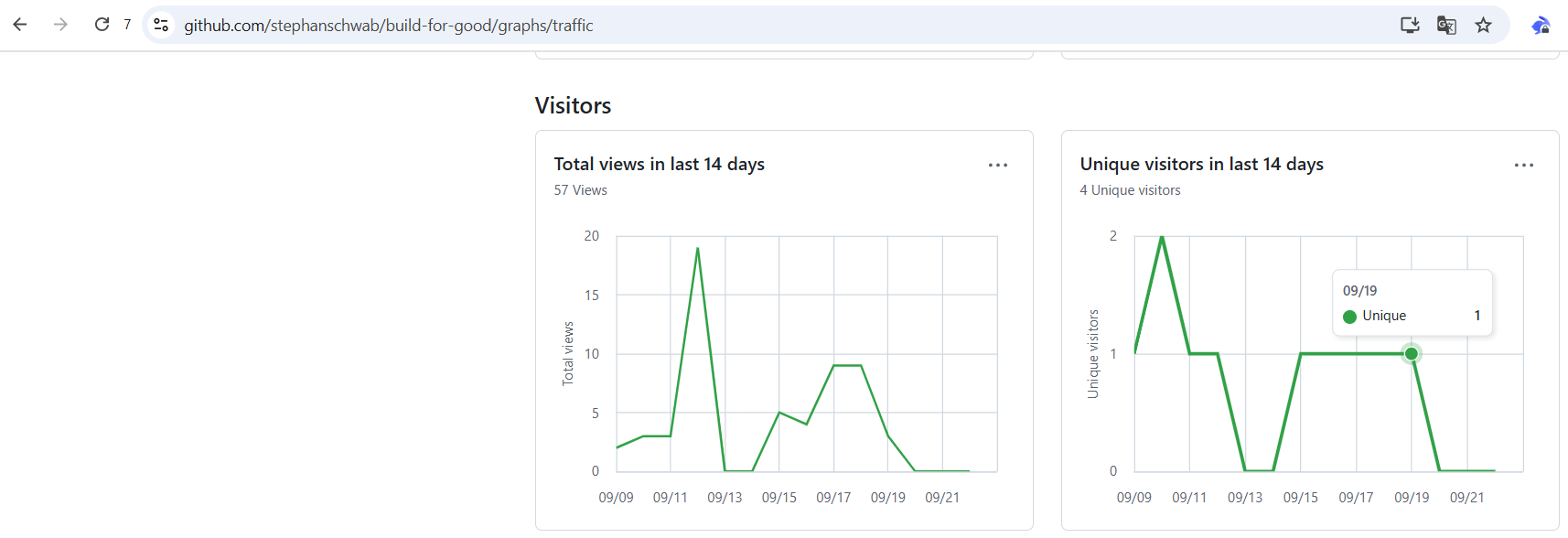 It’s great to see that these tools are not only published but actively used by the community. Every clone, view, and visitor means Optimists are exploring and benefiting from BuildForGood resources.