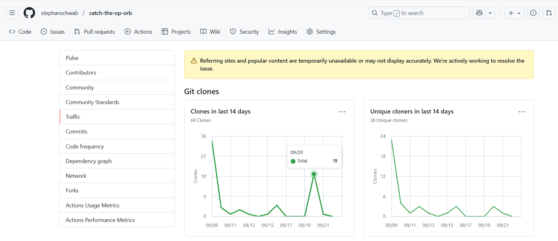 In just 2 weeks, the game has shown the strongest adoption: • 69 clones • 38 unique cloners • 165 views • 4 unique visitors
