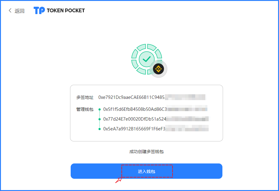 点击【进入钱包】,即可打开刚刚创建的多签钱包。