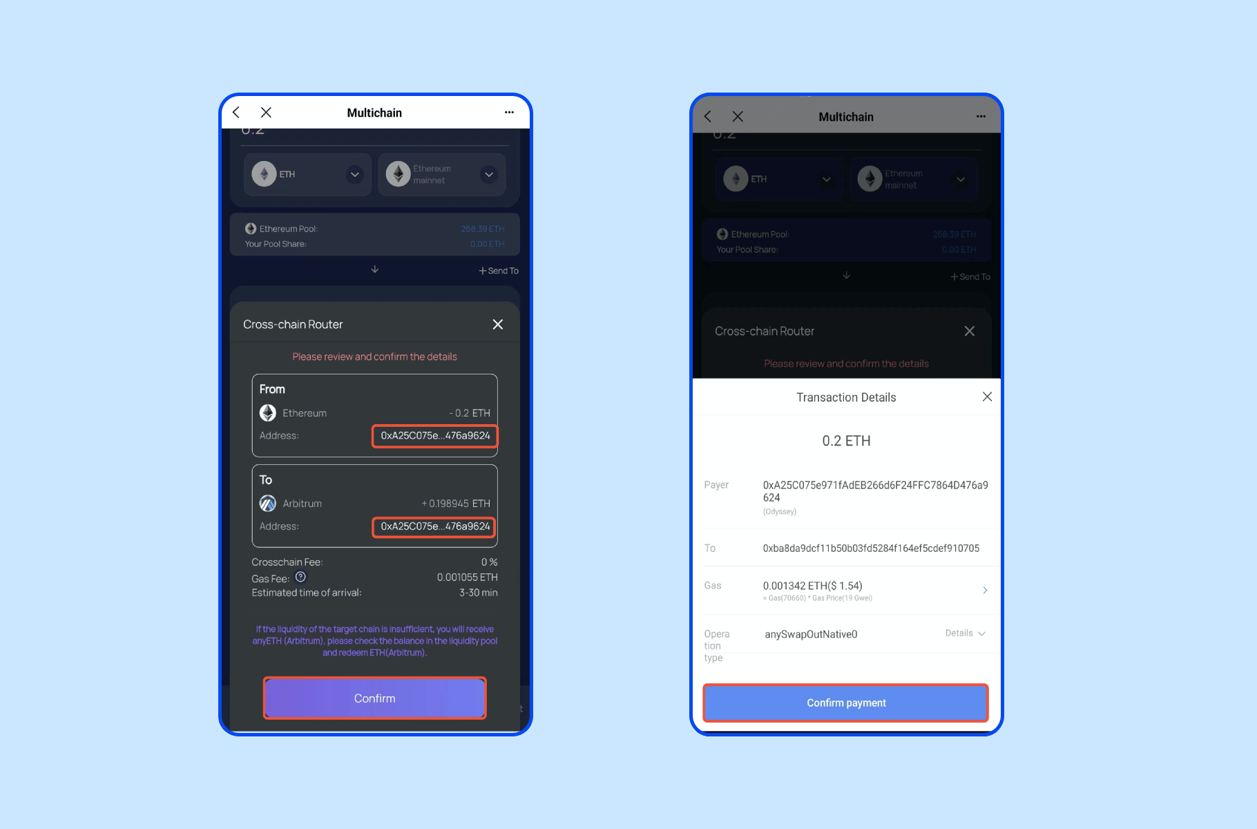 3.确认交易细节,点击【Confirm】,继续点击【Confirm payment】确认交易。