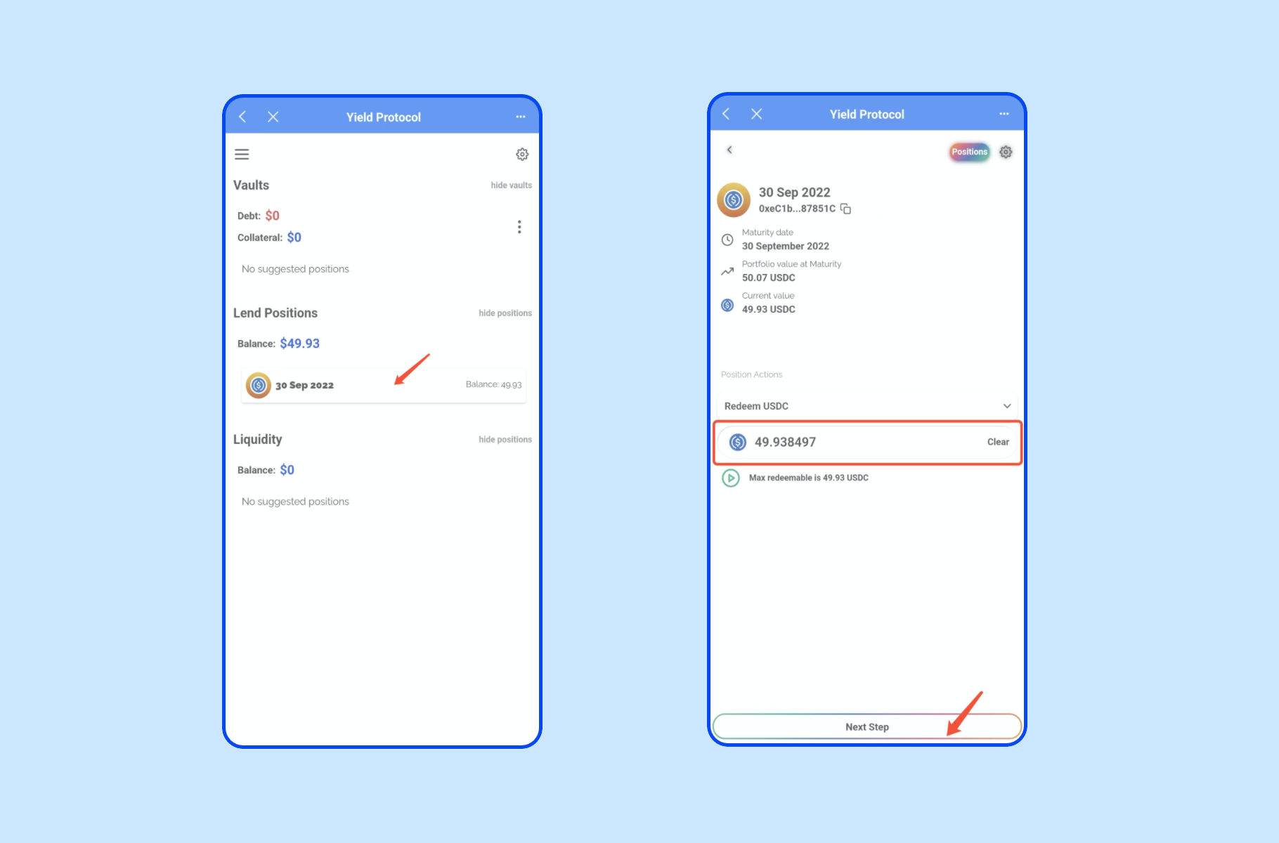 2.點擊您借出的那筆資產,選擇您需要贖回的數量,點擊【Next Step】;