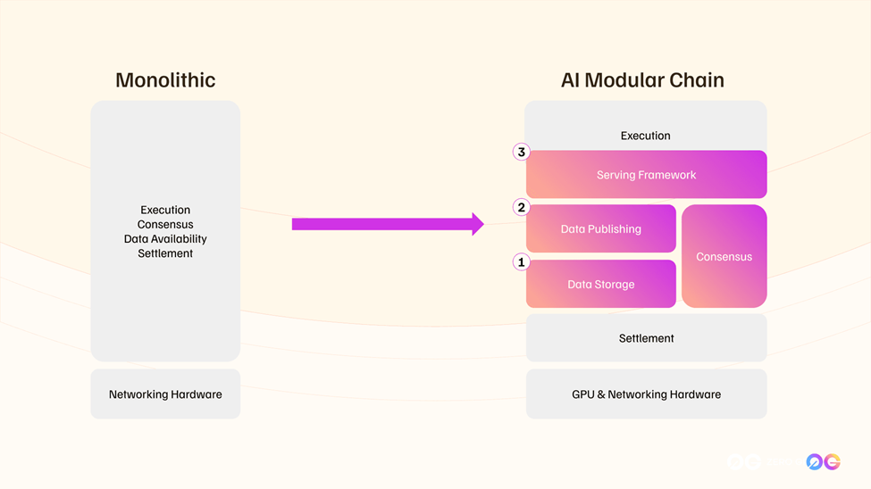 เราได้กล่าวถึงเรื่องนี้อย่างละเอียดในบล็อกโพสต์อื่นๆของเรา แต่โดยรวมแล้ว 0G มีระบบจัดเก็บ data ในตัวที่สามารถสืบค้นได้อย่างรวดเร็วเพื่อความพร้อมใช้งานของ data ที่ประมาณ 10-30 เมกะไบต์ต่อวินาที (เร็วกว่า Celestia 24 เท่า) นอกจากนี้ยังสามารถขยายได้ไม่จำกัด เนื่องจากสามารถเพิ่มเครือข่ายฉันทามติได้อย่างต่อเนื่อง โดยแต่ละเครือข่ายจัดจะการธุรกรรมแบบขนานกัน โดยมีจุดประสงค์ที่สำคัญเป็นอันดับแรกคือการตอบโจทย์ของโครงการ AI ที่ต้องการโซลูชัน DA เช่น 0G โดยเฉพาะ เพราะเรามุ่งเน้นที่จะทำให้ AI เป็นสาธารณประโยชน์