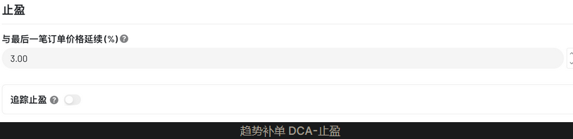 趋势补单止盈需要所有顺势加仓的补单都成交后,价格继续朝盈利百分比时将下止盈单。牛市不言顶,熊市不言底,在实际的交易过程中,我们可以设置一个不容易达到的止盈目标百分比,这笔订单的结束可以通过止损的方式结束,触发器结束,或者我们主动平仓结束