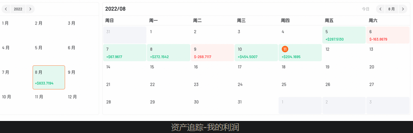 根据每日资产总权益变化和资产的转入转出进行盈亏分析。每日盈亏、每月盈亏了然于胸,字段说明: