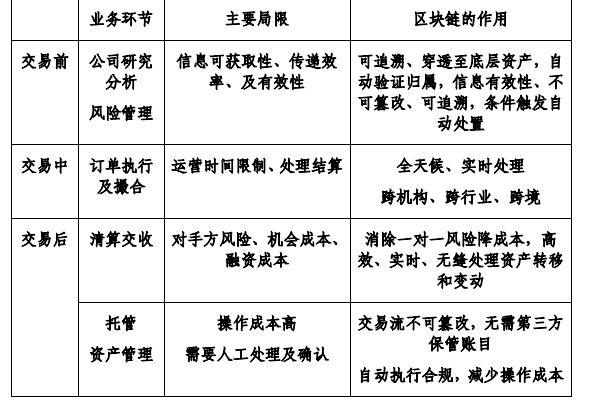 4)通过使用智能合约实现证券和现金划转,减少发生 手工或技术故障的操作类风险;
