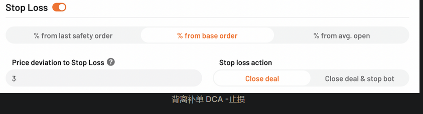 背离补单 DCA机器人的止损方式都是基于价格的,有三种类型: