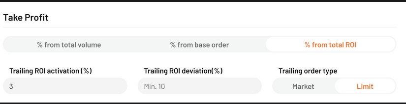 止盈方式有两大类:「交易额止盈」和 「ROI 跟踪止盈」。
