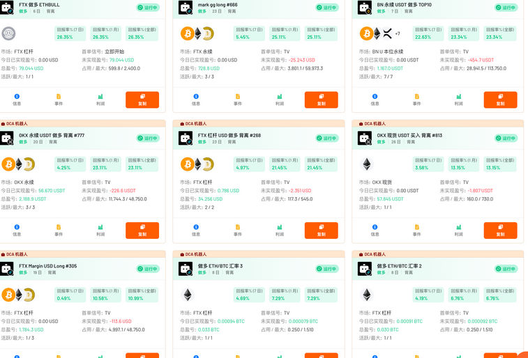 会挑选出表现优秀的机器人,实时展示机器人完整信息。你可以选择直接复制机器人,或者参考来创建不一样的机器人。