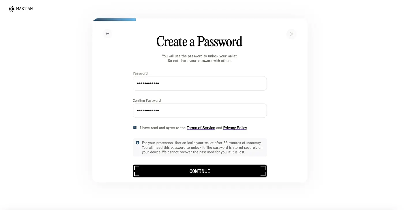 When setting up your Martian Wallet, you will be prompted to create a strong password. Make sure to use a combination of letters, numbers, and special characters to enhance security. Once you have created a password, store it in a safe place, as you will need it to unlock your wallet later.