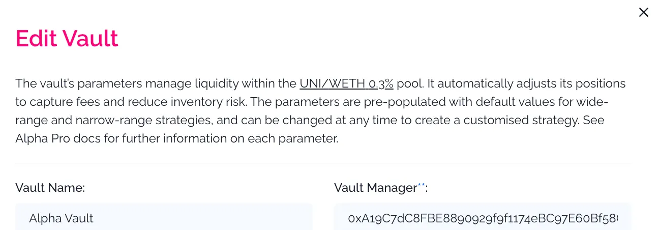 Further information can be found in Alpha Vaults’s User Guides for providing liquidity and managing liquidity.