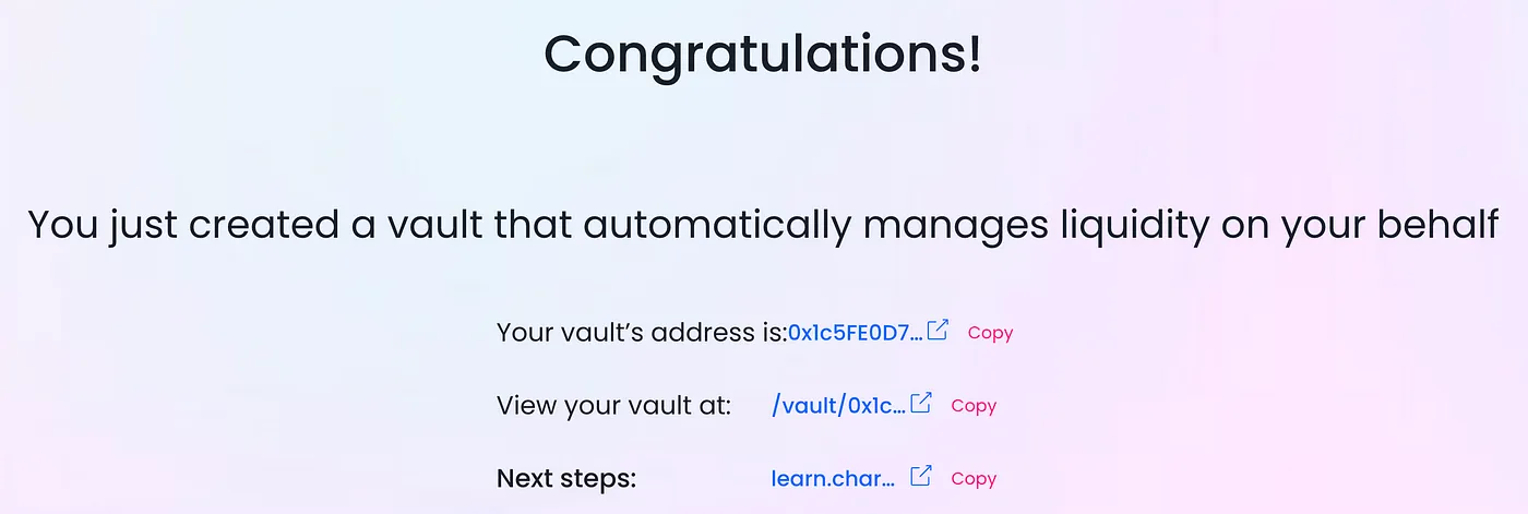 Congratulations! You just created a vault with your own custom LP strategy!