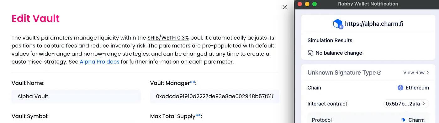 Charm Simulator is a permissionless and easy-to-use simulator to backtest the performance of an LP strategy. It works for any Uniswap v3 pool*, and any strategy supported by Alpha Vaults. Anyone can use Charm Simulator to test the performance of a vault before it is created.