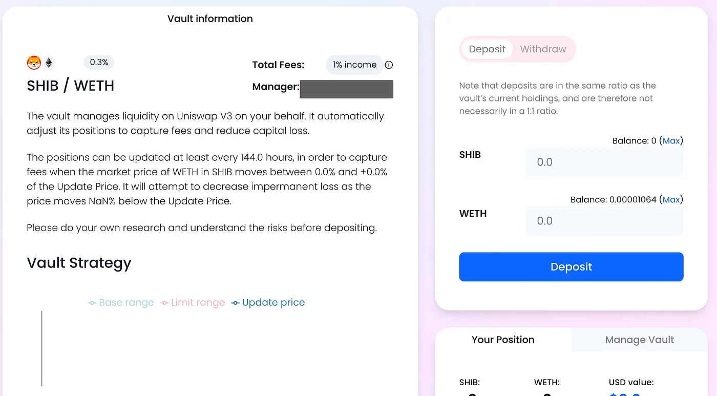 All the vault’s liquidity is in a Uniswap V3 pool at all times.
