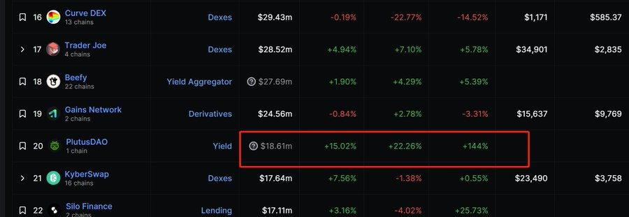 其TVL为$18m,市值只有$2.6m,但是它的TVL在7天内上涨了22%,30天上涨了144%。
