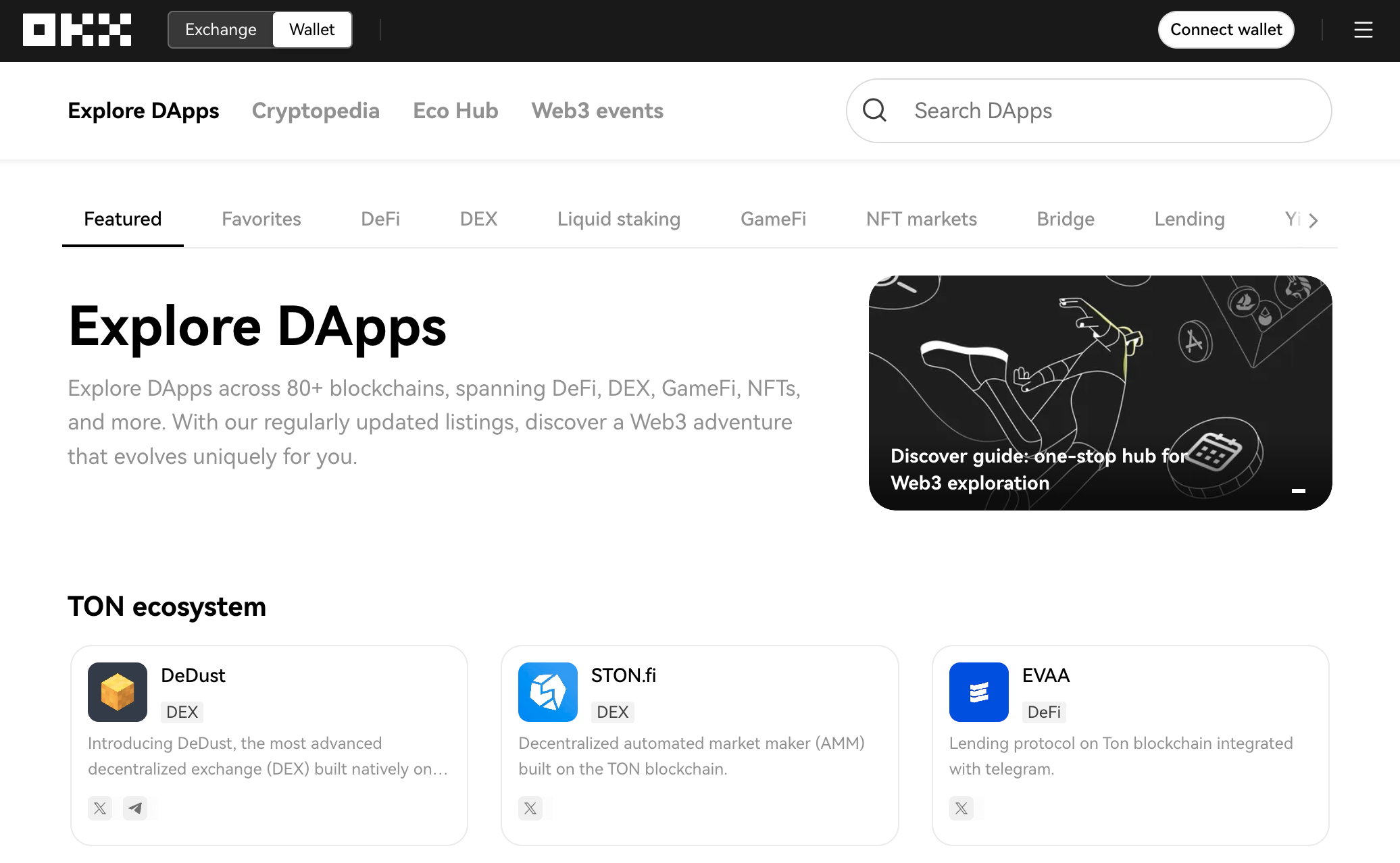 OKX is a top centralized exchange (CEX) known for its wide range of services and strong security. By integrating EVAA, the liquidity layer of the TON ecosystem, OKX allows users to earn more through on-chain lending, all made accessible through the OKX DeFi Aggregator, which brings multiple DeFi services together in one place for seamless use.