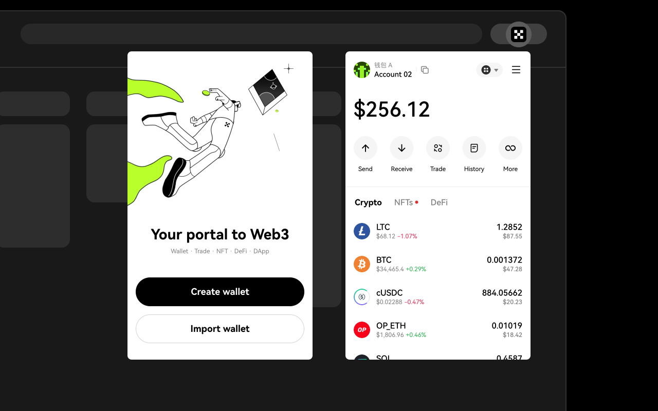 The OKX Wallet is a noncustodial, multichain digital asset management tool, available as a browser extension. Being noncustodial means OKX has no control over your assets—only you do.