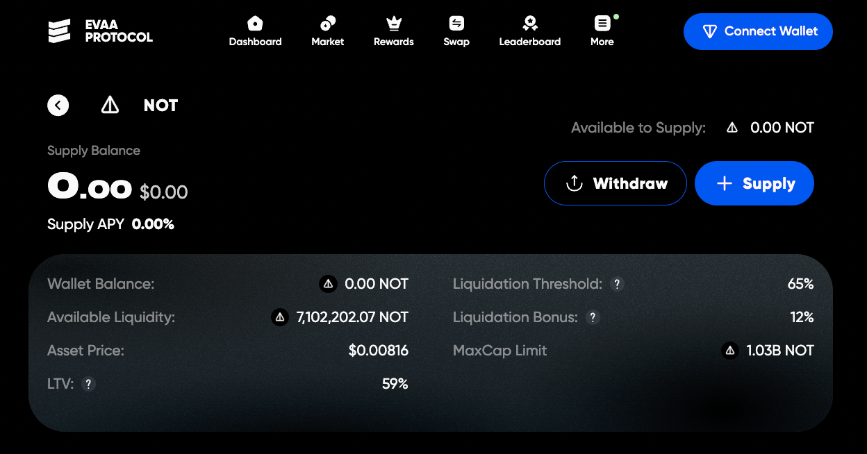 EVAA’s ALTS Pool plays a crucial role in building the MemeFi sector within the TON ecosystem. Giving community-driven tokens like DOGS, NOT, and CATI real DeFi applications, strengthens their relevance and boosts their utility. EVAA allows users to earn, borrow, and farm in previously impossible ways, making it a key driver of growth for the TON ecosystem.
