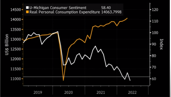 Despite the decline in consumer sentiment, the Michigan consumer index cited earlier has actually fallen to 50.4.
