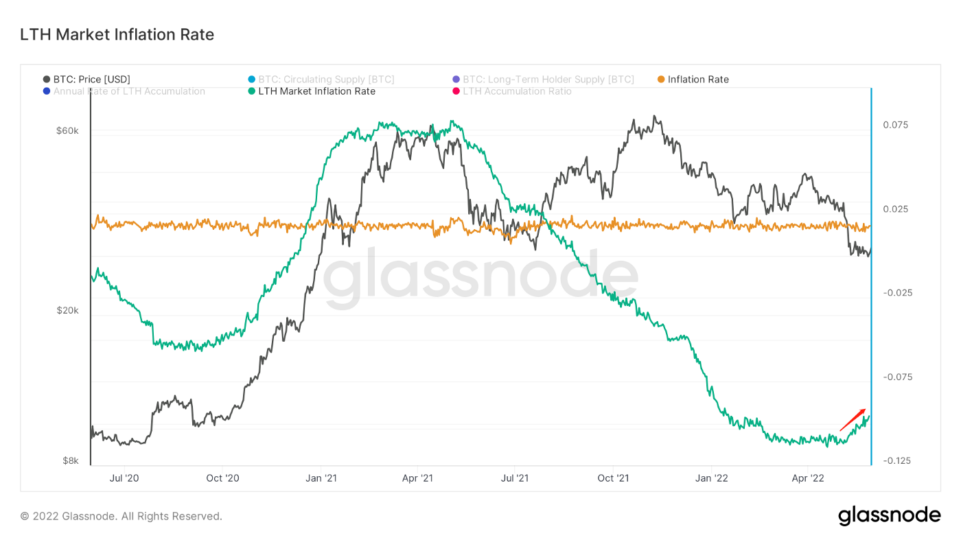 The illiquid supply group of has increased slightly in the recent past, and the attitude of the important groups in the market has changed temporarily, which does not mean the signal of market reversal, but can only represent a temporary drop in pressure in the short term.