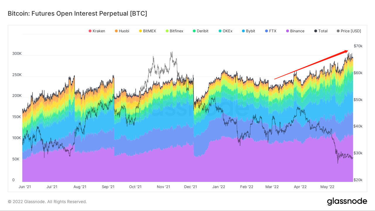 1. The perpetuity futures open interest continues to rise, and the potential leverage risk in the market is large.