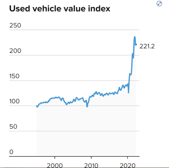 (下图:二手车价格指数 Manheim Used Vehicle Value Index,来源:Cox Automotive)