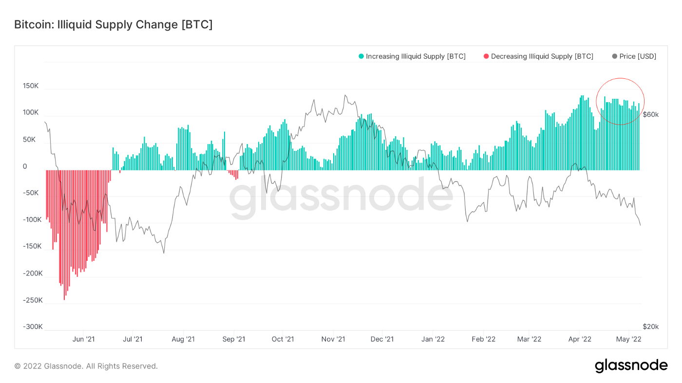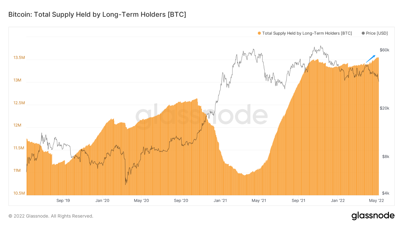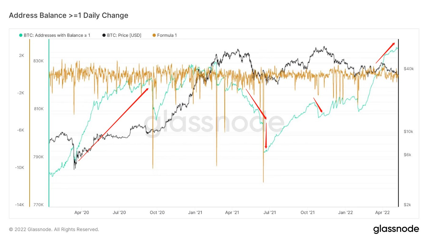 1年以上的地址用户持有的水平已经达到2019年1月下旬的水平。